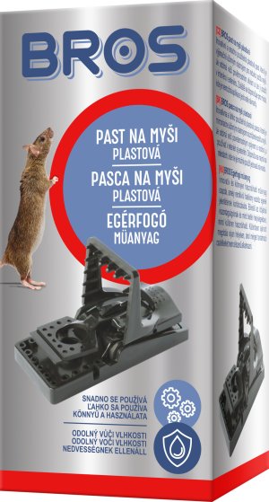 Plastová past na myši. Pohodlná obsluha, odolná proti atmosférickým vlivům (vlhkost). Nádoba na nástrahu umožňuje bezpečné nastavení pasti.