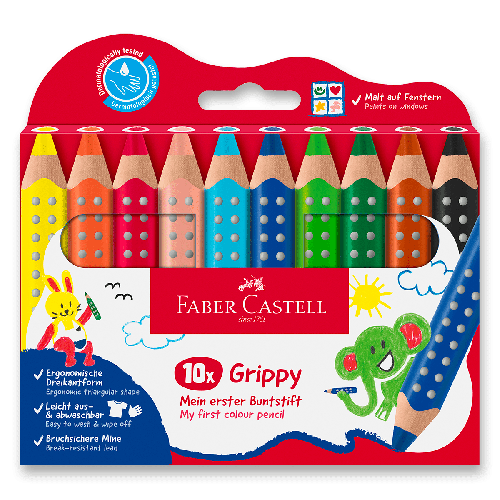 TLOUŠŤKA TUHY 10 MM., * 3v1: pastelka, akvarelová pastelka a voskovka, * kreslí na papír, karton a sklo, * patentovaná GRIP zóna s malými masážními a protiskluzovými body, * trojhranný ergonomický úchop pro nácvik správného držení tužky, * intenzivní syté barvy bez nutnosti na pastelku tlačit, vodou rozmalovatelné, * lze setřít z většiny hladkých povrchů a vyprat z většiny běžných textilií (40 °C), * speciální technologie lepení (SV) zamezuje lámání tuhy, * vyrobeno z certifikovaného FSC dřeva, * dermatologicky testováno, VHODNÉ PRO DĚTI OD 2 LET., [eco] [break_resistant] [washable][ergonomic_grip]