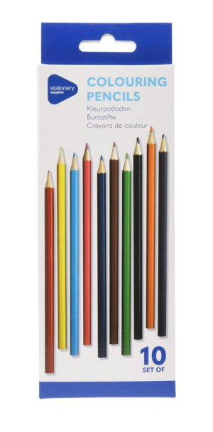 Klasické dřevěné pastelky v deseti základních barvách pro kreslení ve škole i doma.