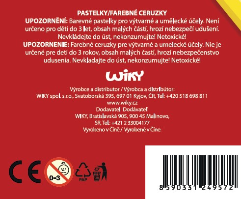 Seznam varování o bezpečnosti pastelek vychází z požadavků nařízení (EU) 2023/988 o obecné bezpečnosti výrobků (GPSR): * Věnujte pozornost chemickému složení pastelek, vybírejte pastelky netoxické, zejména pro malé děti. * Zkontrolujte, zda pastelky mají příslušné atesty a certifikáty bezpečnosti, např. značka CE. * Ujistěte se, že pastelky jsou vhodné pro věk dítěte podle doporučení výrobce. * Vyhýbejte se pastelkám s malými prvky, které mohou být spolknuty dítětem a hrozí nebezpečí udušení. * Pastelky by měly být řádně skladovány, aby se zabránilo jejich poškození nebo znečištění. * Pravidelně kontrolujte stav pastelek, abyste se ujistili, že nejsou zlomené nebo poškozené, což by mohlo představovat nebezpečí pro dítě. * Při kreslení pastelkami dohlížejte na dítě, abyste zabránili jejich vkládání do úst nebo očí. * Po použití si umyjte ruce dítěte, abyste odstranili případné stopy pigmentů z pastelek. * Věnujte pozornost typu balení, aby bylo bezpečné a obtížně otevíratelné pro malé děti. * Informujte dítě o zásadách bezpečného používání pastelek, např. Neházet je, ne kousat.