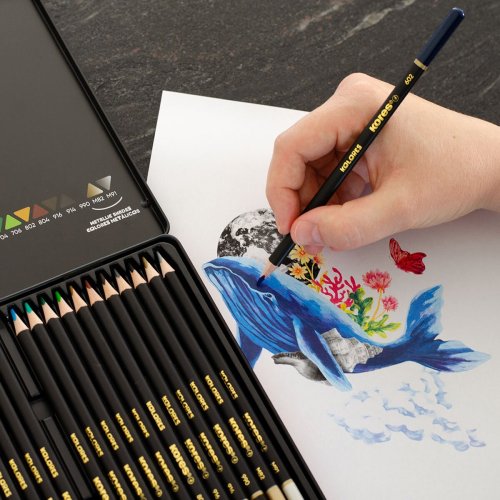 • V elegantním kovovém pouzdře, které je navrženo tak, aby ochránilo pastelky