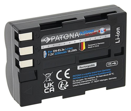 Kompatibilní baterie pro fotoaparáty Nikon. Baterie se vyznačují vysokou kvalitou, mají integrovanou ochranu proti přetížení, přebití a přehřívání. Nabíjení baterie je realizováno skrze zabudovaný konektor USB-C. Lze ji nabíjet připojením kabelu do USB-C konektoru (např. z počítače, powerbanky či nabíječkou na mobilní telefon) tak i v klasické nabíječce na Li-ion. Nabíjecí proud max. 1,2 A (vyšší vstupní proudy jsou automaticky redukovány pomocí IC ovládání baterie).