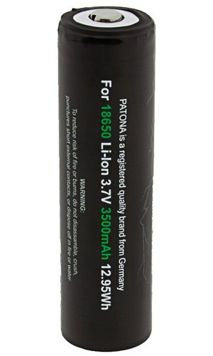 Baterie PATONA 18650 s kapacitou 3500 mAh, výdrží až 300 nabíjecích cyklů a vyvýšeným kladným pólem.
