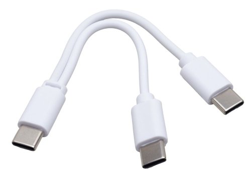 Balení obsahuje 4 kusy baterií a nabíjecí kabel USB-C na 2× USB-C.
