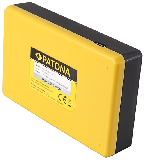 S nabíječkou Patona Triple lze nabíjet současně až 3 baterie. Na LCD displeji se zobrazuje aktuální stav nabití baterie. Napájení nabíječky je realizováno skrze standardní USB port pomocí dodaného kabelu USB typu C. Nabíječky jsou vyráběny dle nejvyšších evropských standardů kvality a vyznačují se extrémně dlouhou životností.