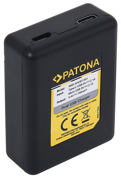 S nabíječkou Patona DUAL lze nabíjet 2 baterie AHDBT901 nebo ADBAT001 současně, a to z jakéhokoliv USB výstupu. Disponuje konektory micro USB a USB typu C. Nabíječky jsou vyráběny dle nejvyšších evropských standardů kvality a vyznačují se extrémně dlouhou životností.