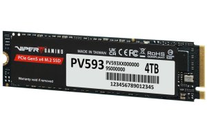 SSD disk Patriot Viper PV593, který nakopne váš PC systém enormním výkonem. Je vhodný do tvůrčích, herních i profesionálních sestav. Potěší všechny nadšence do technologií, ať už se věnují náročné práci, nebo multimediálnímu obsahu. SSD jednotka se uplatní například při editaci fotografií, obrázků nebo videa ve vysokém rozlišení. TLC NAND paměti, které disponují vysokou sekvenční rychlost čtení až 14 000 MB/s a zápisu až 10 000 MB/s zvládnou i extrémní multitasking.