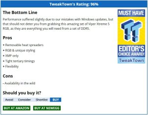 Tento kit Patriot Viper Xtreme 5 RGB 48 GB 7600 MT/s (2× 24 GB) získal ocenění: