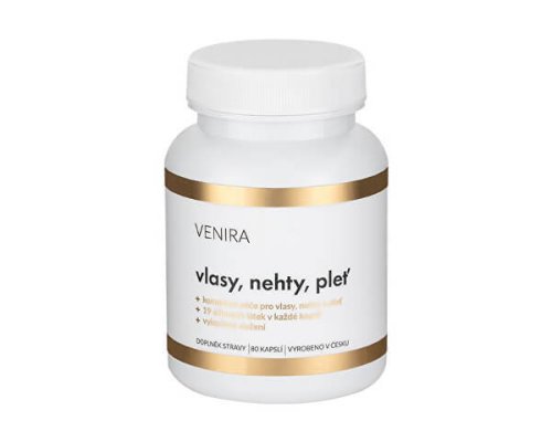 Vitamíny pro podporu růstu, objemu a kvality vlasů, silné a nelámající se nehty a nádhernou pleť - to jsou Venira kapsle. Úspěch těchto čistě přírodních kapslí stojí na mnohaletém vývoji a kvalitě jednotlivých složek. Tento doplněk stravy doporučujeme každému, kdo chce soustavně pracovat na zlepšení kvality a vzhledu svých vlasů, nehtů a pokožky a zároveň každému, kdo hledá účinné řešení pro své lámavé nehty, slabé a vypadávající vlasy a drobné nedokonalosti pleti. Venira kapsle pro vlasy, nehty a pleť jsou vhodné pro ženy i muže. Vzhledem k tomu, že kapsle jsou přírodní a zdravotně nezávadné, mohou je užívat i ženy v období těhotenství a kojení, ovšem až po předchozí konzultaci s ošetřujícím lékařem. Jaké problémy řeší: