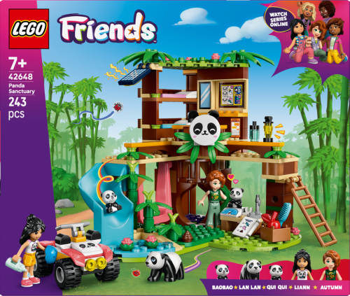 Objevte zábavný dárek pro děti plný pand! Se stavebnicí LEGO® Friends (42648) Péče o zvířátka v pandí záchranné stanici si holky, kluci a milovníci zvířat od 7 let vymyslí vlastní příběhy o záchraně pand. Součástí stavebnice je sestavitelný domek na stromě a čtyřkolka, 2 minipanenky a 3 figurky pand, které inspirují ke kreativnímu hraní. Připravte se na zábavné hraní plné zvířátek! Děti budou vyprávět příběh Autumn a Liann, které pomáhají v pandí záchranné stanici. Součástí stavebnice je celá řada doplňků, včetně váhy a pomůcek pro péči o srst. Nechybí spousta vtipných detailů – nechte pandy svištět po skluzavce do vody nebo se s nimi houpejte na houpačce. Čtyřkolka je ideální pro přepravu bambusu, který pandy tak milují. Když si pandy zdřímnou v jeskyni, kamarádky vylezou po žebříku do domku na stromě, kde najdou psací stůl a 2 postele. S touto stavebnicí si děti užijí vyprávění příběhů o přátelství a rozvinou své sociální dovednosti prostřednictvím hraní.