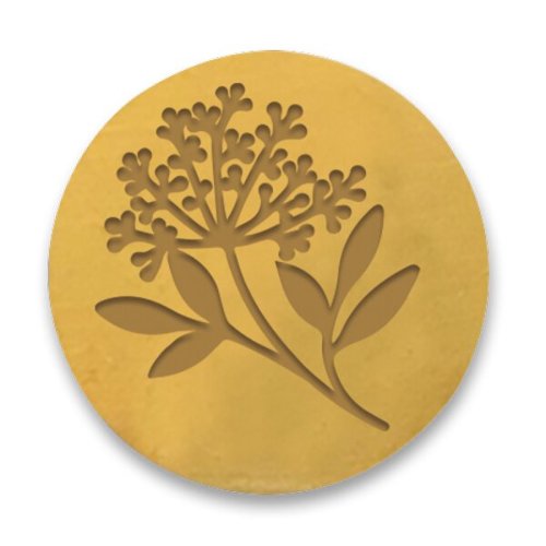 Kovové pečetidlo Aladine s motivem bezového květu je určené k výrobě voskových pečetí,,Průměr pečetidla: 2 cm