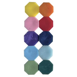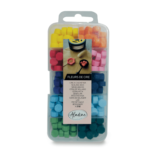 Vosk ve formě granulí na výrobu pečetí, kterými ozdobíte svatební oznámení, pozvánky, chlopně obálek, dárky i kreativní projekty. Používají se společně s pečetní sadou. Do teflonové lžičky se umístí 3–4 granule vosku, použít lze různé barvy pro mramorovaný efekt. Lžička se nahřeje na stojánku nad plamenem čajové svíčky. Po roztavení se vosk ze lžičky nalije na požadované místo a vtiskne se do něj kovové pečetidlo. Obsahuje 10 zářivých barev, rozměr balení 13 x 6,5 x 2 cm.