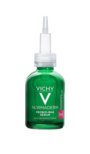 Peelingové sérum Vichy Normaderm Probio-BHA účinně bojuje proti akné. Zmírňuje nedokonalosti pleti a zlepšuje kvalitu pokožky. Díky obsahu mentolu přináší okamžitý pocit svěžesti. Jeho lehká, nemastná a nekomedogenní textura se rychle vstřebává do pleti. Obnovuje pleť a zanechává ji čistou a svěží.