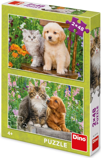 Dětské puzzle obsahující 2 obrázky. Každý motiv se skládá ze 48 dílků. Rozměr motivu: 26,4 x 18,1 cm. Věk: 4+