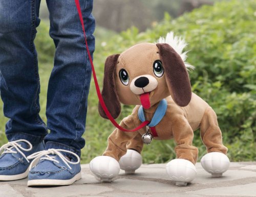 Pejsek Floppy je opravdu bláznivé štěně. A tak rádo chodí na procházky. Chytněte ho za vodítko a sledujte, jak legračně bude za vámi poskakovat. Jeho ťapky jsou zdrsněné a vhodné pro kterýkoli povrch. Nejsou potřeba žádné baterie. Jenom ho prostě tahejte. Pro děti od 3let.