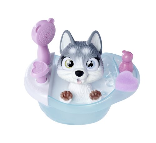 Roztomilé psí miminko s picí a čůrací funkcí s picí lahvičkou, plenka s funkcí změny zbarvení po namočení, magická tlapka (po umytí vlažnou vodou zmizí zabarvení), vana s pumpovací funkcí, včetně koupelových doplňků. Velikost 25 cm.