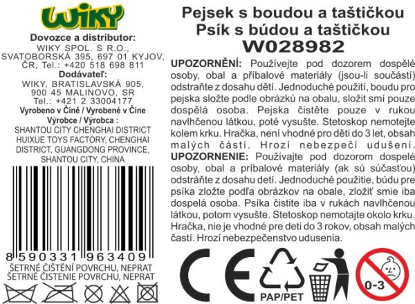 Pejsek s boudou a taštičkou. Velikost pejska 18 cm. Balení obsahuje plyšového pejska, tašku s doplňky a boudu ke složení. Návod na krabici. Doplňky: miska, injekce, stetoskop, pamlsky.