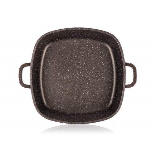 Připravte si svůj oblíbený pokrm ve stylovém pekáči Banquet Premium Dark Brown o rozměrech 28 x 28 x 8 cm. Jeho povrch je nepřilnavý, proto se vám k němu jen tak nepřipalují potraviny a snadno se čistí. Klidně ho umyjete v myčce na nádobí. Indukční dno se hodí na všechny druhy sporáků – elektrický, plynový a sklokeramický sporák i indukce. Pekáč zdobí elegantní mramorový vzor.