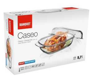Hranatý pekáč s víkem CASEO o objemu 5,7 l (3,7 l nádoba +2 l víko) je vyroben z varného skla. Pekáč je velmi odolný jak mechanicky, tak i teplotně (teplotní rozsah -25 až / + 220 st. C). Je vhodný k pečení masa, zeleninových pokrmů, koláčů nebo k zapékání těstovin. Výhodou je dlouhá životnost, hygienická nezávadnost a snadná údržba. Skleněný pekáč lze mýt v myčce na nádobí.