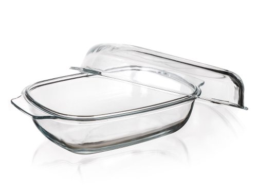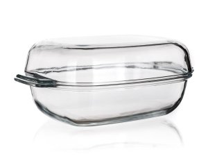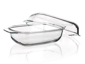 Pekáč hranatý 3,7 + 2 l, 34,5 x 22,5 x 14,5 cm, skleněný s poklicí.