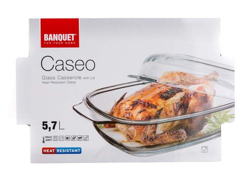 Hranatý pekáč s víkem CASEO o objemu 5,7 l (3,7 l nádoba +2 l víko) je vyroben z varného skla. Pekáč je velmi odolný jak mechanicky, tak i teplotně (teplotní rozsah -25 až / + 220 st. C). Je vhodný k pečení masa, zeleninových pokrmů, koláčů nebo k zapékání těstovin. Výhodou je dlouhá životnost, hygienická nezávadnost a snadná údržba. Skleněný pekáč lze mýt v myčce na nádobí.