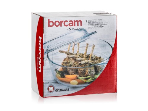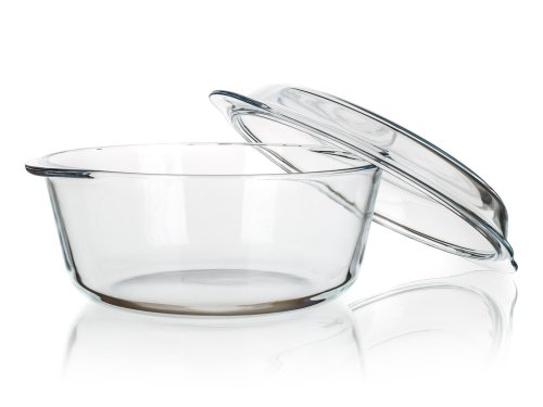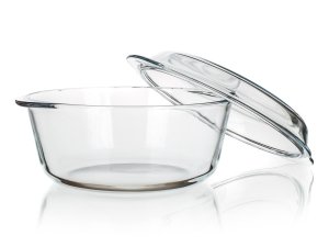 Skleněný kulatý pekáč s víkem o objemu 3,1 l (nádoba 2,2 l + víko 0,9 l) je vyroben z tvrdého boritokřemičitého skla, které je velmi odolné (mechanicky i teplotně -40 až 300 st.C). Výhodou je dlouhá životnost, hygienická nezávadnost a snadná údržba (lze mýt v myčce na nádobí).