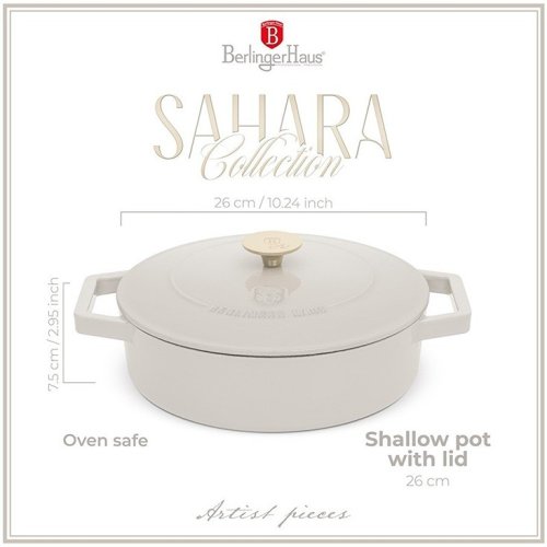 Litinový pekáč s poklicí Berlingerhaus BH-6530 z kolekce Sahara je elegantní a praktickou volbou do moderních kuchyní. Tento stylový a výkonný pekáč je navržen tak, aby splňoval všechny vaše potřeby při pečení. S jeho robustní konstrukcí a moderním designem zvládnete snadno a rychle připravit jakýkoli pokrm.