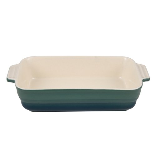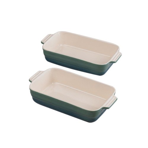 • Sada 2 obdélníkových forem na pečení: 1 forma o rozměrech 31 x 19 x 5,2 cm a jedna forma o rozměrech 37 x 21 x 7 cm. • Vyrobeno z vysoce odolné kameniny. • Interiér v krémové barvě. • Exteriér v odstínech zelené. • Stohovatelný výrobek. • Vhodné do trouby, mikrovlnné trouby, lednice a myčky.Excalibur přináší do vaší kuchyně efektivní a sofistikované kuchyňské nádobí s barevným nádechem. Sada 2 obdélníkových pekařů o rozměrech 31 x 19 x 5,2 cm a 37 x 21 x 7 cm, stohovatelná sada, která vyřeší vaše problémy se skladováním. Jsou vyrobeny z vysoce kvalitní kameniny, jsou extrémně odolné a trvanlivé a udržují teplotu, aby nabídly produkt na stole v jeho optimálním bodě a zároveň šetří energii. Vařte v troubě, ohřívejte jídlo v mikrovlnné troubě nebo je uchovávejte v lednici, cokoli potřebujete. Kolekce připomínající staromódní kuchyni s přechodově zeleným designem, s interiérem v krémové barvě, který zdokonalí vaše přípravy a s uchy je můžete podávat, kde si budete přát. Kompletní sada, která se snadno čistí v myčce, takže je můžete použít tolikrát, kolikrát potřebujete.