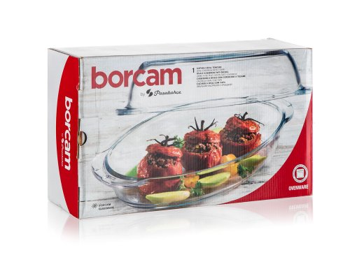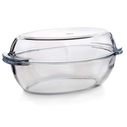 Oválný pekáč s víkem 4 l (nádoba 2,2 l + víko 1,8 l) je vyroben z varného skla. Pekáč je vyroben z tvrdého boritokřemičitého skla, které je velmi odolné, jak mechanicky, tak i teplotně (teplotní rozsah -50 až / 500 st. C). Výhodou je dlouhá životnost, hygienická nezávadnost (sklo je hladké a neporézní), snadná údržba (lze mýt v myčkách na nádobí), sklo je ekologický materiál.