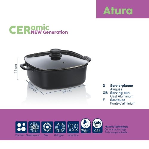 Pekáč Atura s poklicí z litého hliníku s keramickým povrchem.
