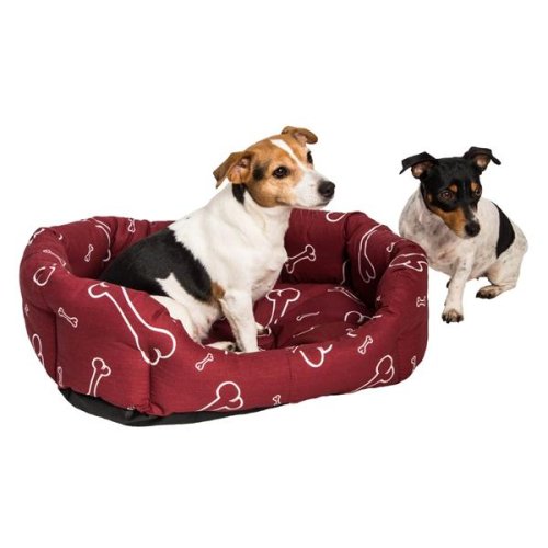 Pohodlný, kvalitní pelech vyrobený z bavlněné látky s potiskem kostí. Zvýšený okraj poskytuje perfektní oporu a tepelnou izolaci. Pelíšek je v několika bodech prošitý, aby nedošlo k nerovnoměrnému rozmístění výplně. Polštářek je vyjímatelný. Pelech se lehce udržuje.