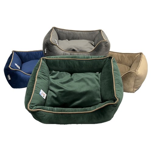 Luxusní sametový pelíšek pro psy s polstrovaným okrajem.