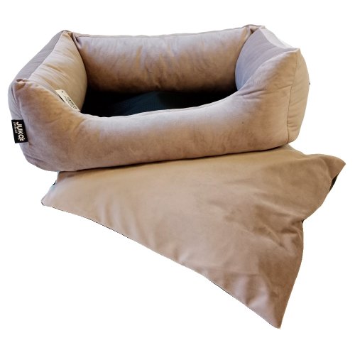 Luxusní sametový pelíšek pro psy s polstrovaným okrajem.