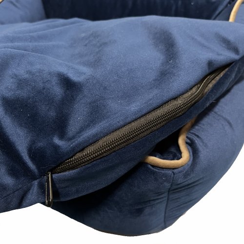 Vrchní látka pelíšku i polštářku sa dají pomocí zipů sundat a prát nebo čistit samostatně.
