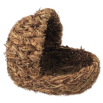 Proutěný pelíšek ve tvaru bačkory vyrobený z přírodních meteriálu.