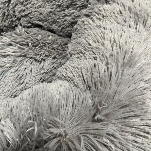 Materiál shaggy je velmi příjemný na dotek díky dlouhému vlasu, má antistresovou vlastnost, která se využívá u psů. Výplň pelíšku je elastický antialergický silikon, který se vyznačuje zvýšenou životností a odolností proti deformaci, ohybu a roztržení.
