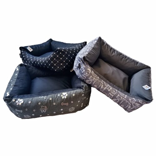 Látkový pelíšek pro psy s vyvýšeným polstrovaným okrajem.