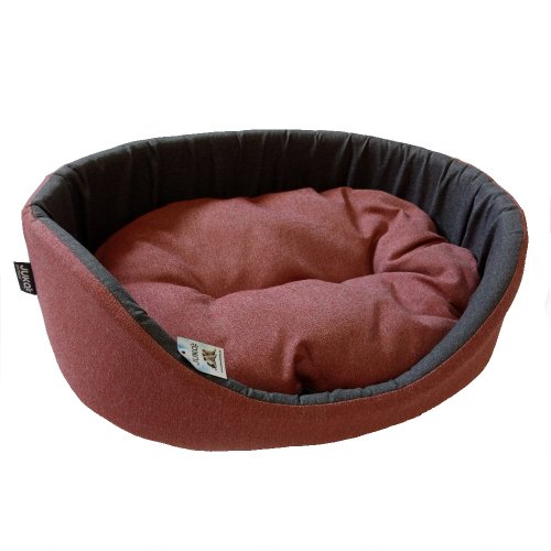 Látkový pelíšek pro psy ve tvaru oválu s vyjímatelným polštářkem.