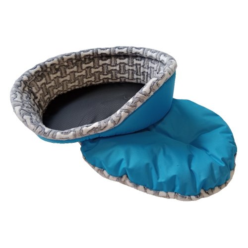 Pelíšek pro psy s vyjímatelným polštářkem ze 2 druhů látek.