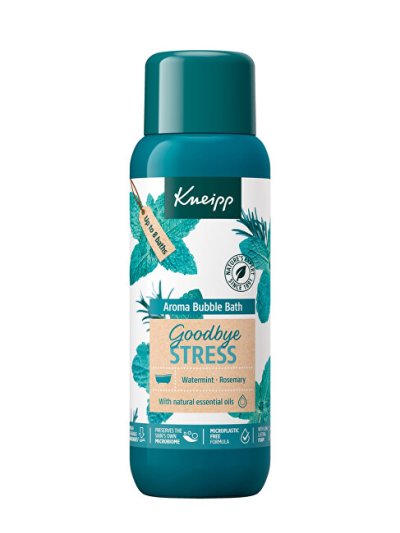 Pěna do koupele Kneipp® Goodbye Stress s esenciálním olejem z rozmarýnu a extraktem z vodní máty povzbudí vaši mysl, abyste snáze překonali únavu a stres. Pracovní napětí, hádka s kamarádkou a nejrůznější drobné nepříjemnosti dokáží původně pěkný den změnit v nepříjemný stres. Namísto toho, abyste až do noci přemýšleli o tom, co vše bylo na uplynulém dni špatně, raději si dopřejte relaxační koupel, která vám pomůže zapomenout na všechny starosti. Pěna do koupele Kneipp® Goodbye Stress s esenciálním olejem z rozmarýnu a výtažkem z vodní máty promění koupelnu během několika minut v oázu klidu. Počítejte ale s tím, že se vám z tyrkysově zbarvené vody se svěží vůní a dlouhotrvající pěnou dost možná vůbec nebude chtít ven.