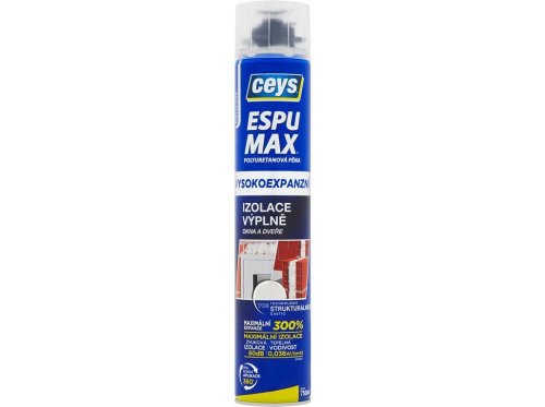 Espumax PU pěna pro izolaci a výplň. Polyuretanová pěna s vysokou expanzí (300 %). Určená speciálně pro těsnění, výplně a akustickou a tepelnou izolaci. Po nanesení zvětší objemovou hmotnost až na 40 litrů a vytvoří trojrozměrnou strukturu z dutých buněk, které představují bariéru proti hluku, teplu a vlhkosti. Je kompaktní a hutná. Balení je vhodné pro aplikaci pistolí.