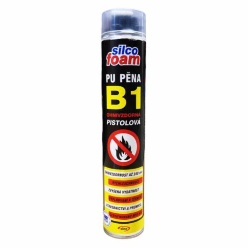pěna montážní pistolová B1 ohnivzdorná, 750 ml, SILCOFOAM jednosložková PU pistolová pěna určená pro připevňování, utěsňování, zaplňování a izolování stavebních otvorů při požadavku požární odolnosti …