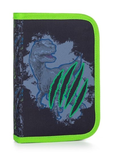 Jednopatrový školní penál s 2 chlopněmi, prázdný obsahuje 25 gumových poutek pro uchycení psacích potřeb. Na vnitřních chlopních jsou průhledné fólie pro rozvrh hodin.