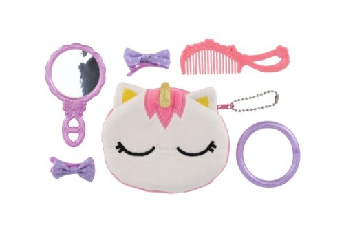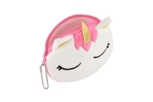 Malá šikovná peněženka se vejde do každé kabelky. Přední stranu má ozdobenou potiskem jednorožce. Zavírá se na zip. Peněženka s doplňky do vlasů. Rozměry výrobku 12 x 10 x 2 cm. Vhodné pro děti od 3 let.