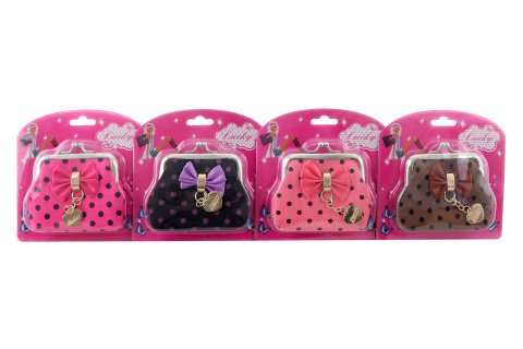 Látková peněženka s mašličkou a srdíčkem. Baleno na kartě. Rozměry balení 13x13x2 cm. Rozměry peněženky 9x8 cm. Výrobek není hračka.