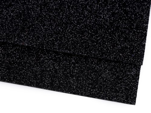 Pěnová guma Moosgummi s glitry 20x30 cm - černá (10 ks)