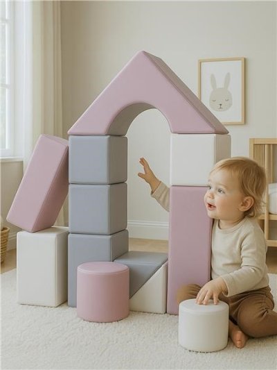 Všechny prvky jsou bezpečné, lehounké a měkké, lze je použít k vytvoření různých vlastních konstrukcí i ke cvičení nebo jen tak k sezení. Kostky umožňují dětem ozvíjet fantazii, koordinaci a motorické dovednosti.