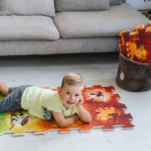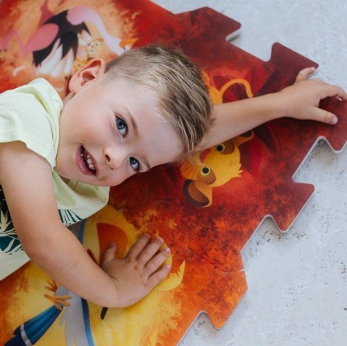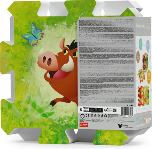 Barevná a měkká pěnová puzzle s motivem oblíbeného Lvího krále, ideální pro malé děti. Sada obsahuje 8 dílků, které lze snadno spojovat a tvořit hrací plochu o rozměrech 32 x 32 x 1 cm. Bezpečný materiál vhodný i pro nejmenší děti. Puzzle je skvělým doplňkem pro hraní na zemi, rozvíjí motorické dovednosti a nabízí pohodlný povrch pro dětské aktivity. Dodává se v praktickém sáčku pro snadné uskladnění. Rozměr balení: 32 x 32 x 1 cm Vhodné od narození