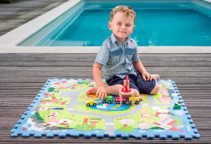Pestobarevné pěnové puzzle Plastica s motivem vesnice pochází z dílny českých návrhářů, kdy slouží jako fantastická podložka na zem dětského pokojíčku. Zajistí dlouhé hodiny hraní, ale lze je klidně využít pro následný odpočinek či pro mnoho dalších aktivit všeho druhu. Tyto podlažní pěnové puzzle se poté skládají hned z 9 pěnových dílků o výšce 1 cm a jsou vhodné pro kluky i holky od 3 let, kteří tak nebudou mít žádné obtíže se stavbou této podložky. Hračka poté rozvíjí dětskou kreativitu, logické uvažování a koordinaci očí a rukou, které vaše ratolest bezpochyby využije na své cestě životem.