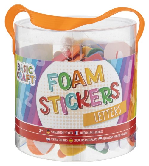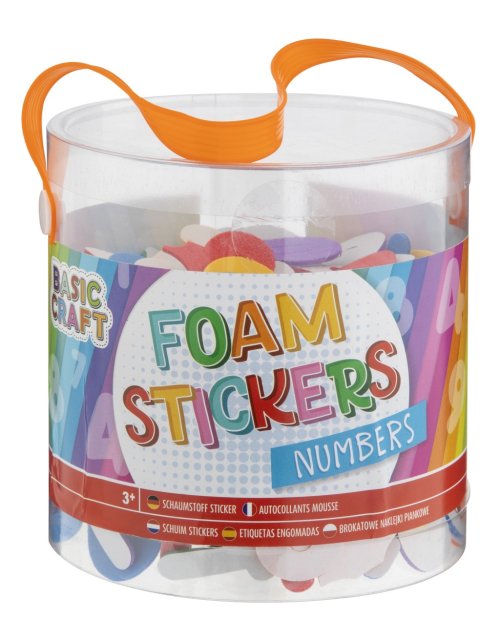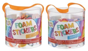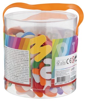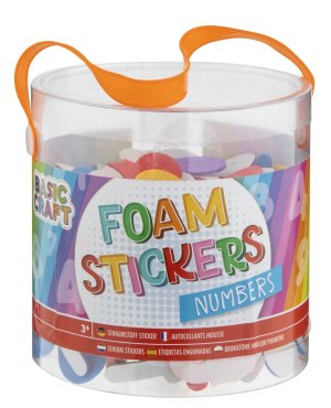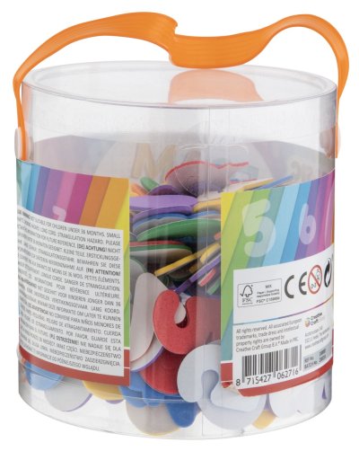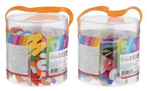 Pěnové samolepky písmena/čísla v praktickém plstovém kyblíku.